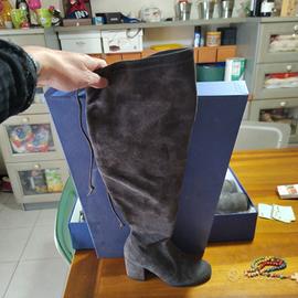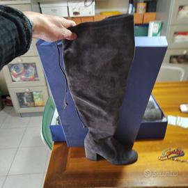 Stivali donna sopra il ginocchio in camoscio colore grigio usati pochissimo completo di scatola