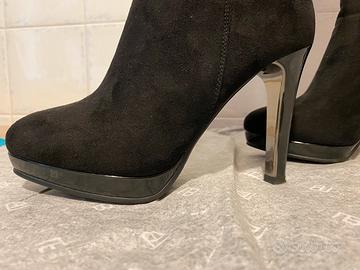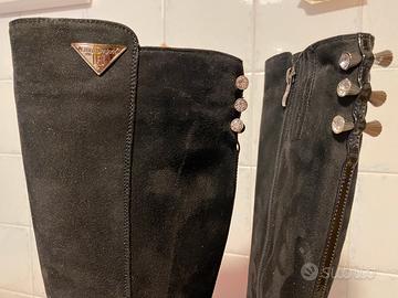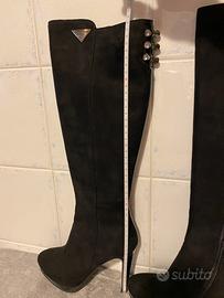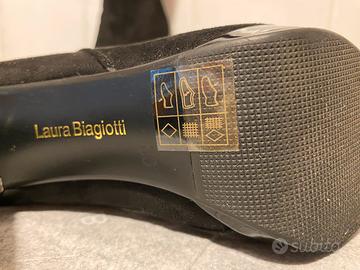 Vendo stivali eleganti numero 36 Marca: Laura Biagiotti Colore nero Materiale: micro Altezza tacco cm 10 Plateau cm 1,5 Larghezza gambale cm 36 circa Sono presenti sul gambale 3 inserti in elastico, (un po’ si vedono nella foto 5) Altezza gambale, partendo dalla suola, cm 48 dietro il ginocchio e 49 sul davanti (vedi foto 6) Con confezione originale e tacchetti + 1 inserto decorativo di ricambio (foto 1) Indossati pochissimo come evidente dalla suola praticamente nuova.
