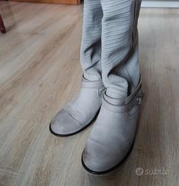 Stivali donna in vera pelle, colore ghiaccio, con fibbia, numero 37, indossati un paio di volte.