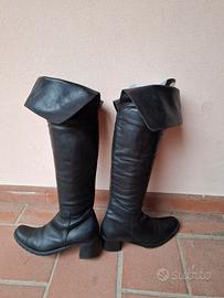 stivale tacco alto usato pochissimo pelle nera stivale pelle nera tacco basso anche ripiegabile in alto entrambi numero 38