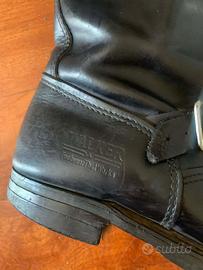 Vendo Stivali Walker Police donna usati ma in ottime condizioni in pelle pieno fiore colore nero, con cinturino con fibbia sulla parte superiore e sulla parte inferiore. Originale vintage Anni '80. Suola con battistrada non perfetta ma originale Tapper mai risuolata. N°39/40 Logo Walker impresso sul lato esterno. Euro 250 + s.p.