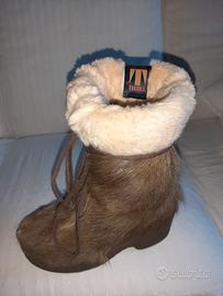 Stivali dopo sci donna con sabot , pelliccia vera esterna e imbottitura tipo montone interna, stringhe in pelle. Marca TECNICA , come nuovi, n 38