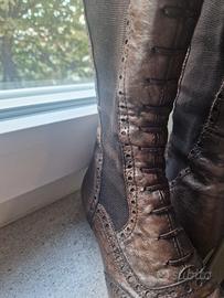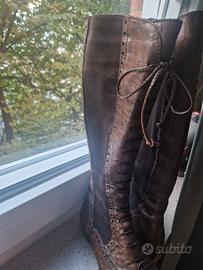 stivali da donna nr.39 color testa di moro in morbida nappa e elastico laterale x il facile indosso marca spagnola PONS QUINTANA.lavorazione dello stivale con disegno stile inglese, strighe sul davanti e laccio e fiocco solo decorativo.messe una volta sono nella scatola
