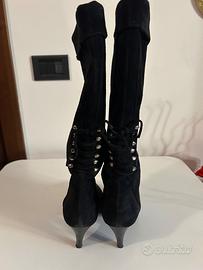 Si vende paio di stivali eleganti da donna in pelle di camoscio nere, taglia 36, usate pochissimo e in perfette condizioni.