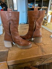stivali marca Elvio Zanon in pelle con tacco medio alto n. 39 nuovi con scatola