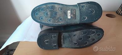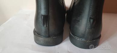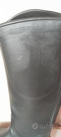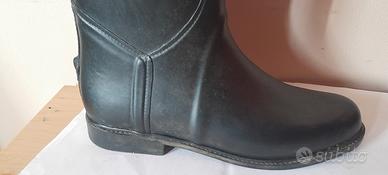 Vendo stivali da equitazione alti di marca Geologic (linea Decathlon dedicata al mondo dell'equitazione, ora Fouganza). Colore: Nero. Taglia: 39 EU / 6 UK / 6.5 US. Materiale: Sintetico/Gomma di alta qualità, facili da pulire e completamente impermeabili. Dettagli: * Fascia elastica posteriore per una migliore aderenza e comfort sul polpaccio. Poggiasperoni integrato sul tallone. Suola con carrarmato antiscivolo ancora in ottimo stato (vedi foto). Stato dell'oggetto: Gli stivali sono usati ma in buone condizioni strutturali. Presentano alcuni naturali segni di usura sulla superficie (piccole macchie e graffi superficiali visibili in foto) che non ne compromettono l'utilizzo. L'interno è pulito e le cuciture sono integre. Perfetti per chi inizia a cavalcare o come stivali da scuderia/lavoro per le giornate di pioggia e fango.