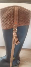 Nuovi mai indossati colore testa di moro con dettagli in pelle scamosciata più marrone più chiaro.