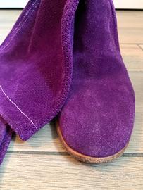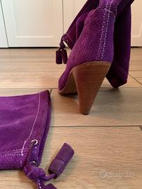 Stivali di pelle scamosciata viola, molto morbidi , con tacco medio alto molto ma comodi, suola in vero cuoio, usati poco, numero 36.