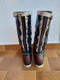 Stupendi Stivali estivi Hector in vera pelle, taglia 37. Sono stivali allacciati, con dettagli traforati e borchie. Presentano un design elegante e particolare. - Tomaia in pelle - Dettagli traforati -