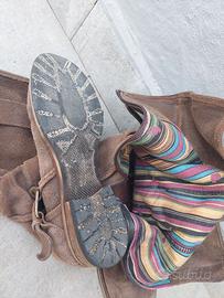 Vendo causa inutilizzo stivali di camoscio misura 39 marca felmini. Buone condizioni,suola e fodera come nuovi, ha solo un piccolo difetto alla piegatura esterna dello stivale sx vicino alla suola(visibile anche da foto).