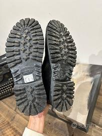 Stivali alti Fiorentini + Baker, in pelle nera. Sono in ottime condizioni e presentano una suola robusta taglia 36 che veste molto grande adatta per un37 37,5 chiusura lampo laterale per infilarli e cinghie sul lato esterno per allargare o stringere al polpaccio indossati una volta quindi praticamente nuovi