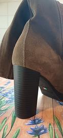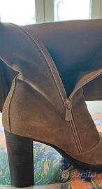 Stivali Nero Giardini eleganti n°38. Tacco 10 cm scamosciati,arrivano sotto il ginocchio.Color beige scuro.Molto comodi con cerniera e elastico sul lato.