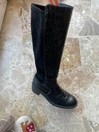 Come da titolo, vendo stivali neri del celebre marchio Fratelli Rossetti, con scampsciato nella parte posteriore, e cuoio tartarugato nella parte anteriore. Comodissimi. Usati una sola vola e conservati nella loro scatola originale. In perfette condizioni. Taglia 38