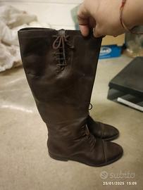 Stivali in pelle testa di moro, Fratelli Rossetti , tg 38 con laccetti sul collo del piede e altezza polpaccio, cerniera interna, vendo per inutilizzo . Con scatola confezione originale e sacca porta stivali.