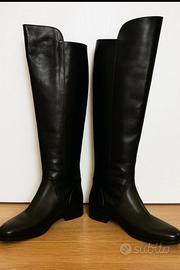 Stivali al ginocchio in vera pelle FRAU. Colore nero, interno in morbida fodera bordeaux, zip laterale in metallo. Taglia 37.