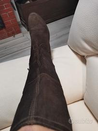 Stivali donna, pelle marrone, al ginocchio, ottimo stato, tacco basso
