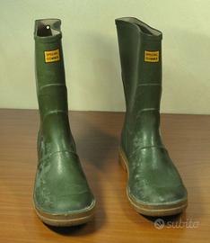 Stivali gomma verdi bassi tronchetto, stivale in pura gomma spessa ideale per giardino, fodera in cotone felpato, suola disegno carro armato antiscivolo, usati pochissimo, taglia 40. Prezzo richiesto €15,00, preferibile ritiro diretto.