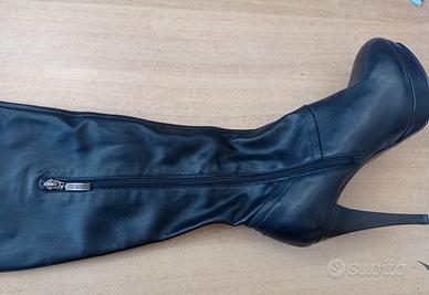 Stivali Guess neri in ecopelle elasticizzato da donna con tacco a spillo sopra il ginocchio e cerniera laterale,taglia 38 in buon stato