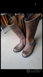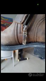 marroni, taglia 37. per un collo del piede molto stretto anche 38. indossati solo qualche volta, hanno alcuni graffi come da foto. le suole sono perfette. altezza a metà polpaccio