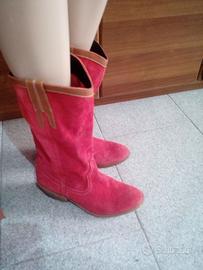 Stivali in camoscio colore rosa fragola con inserti pelle colore cuoio n.38