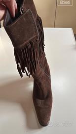 Sono in camoscio con frange, color marrone