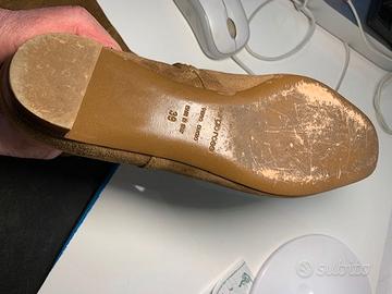 Stivali in camoscio color miele con frange, tacco 1 cm, molto morbidi e praticamente indossati 1 o al massimo 2 volte, come si vede dalla suola. Molto ben tenuti e introvabili sopratutto a questo prezzo.