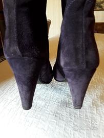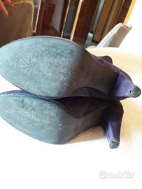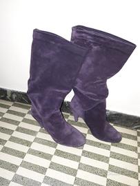 stivali in camoscio vero color viola, senza cerniera . stivali usati. tacco cm 9 larghezza gamba cm 38 - taglia piede 39 il coppatacco è da cambiare