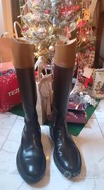 Stivali in Pelle Bicolore Hobbs London - Stile Cavallerizza - TAGLIA 40 Descrizione:Vendo splendidi stivali in vera pelle pregiata del marchio Hobbs London. Un modello classico stile cavallerizza (riding boots) bicolore: gambale nero e parte superiore color cuoio/tan. Eleganti, senza tempo e perfetti per l'autunno e l'inverno. ✨Dettagli: Marchio:Hobbs London Materiale:100% Pelle di alta qualità (morbida e resistente) Colore:Marrone bruciato e Cuoio (Tan) Taglia:40 Condizioni:Come nuovi, la pelle è lucida e ben nutrita (vedi foto). Ideali da abbinare con jeans skinny, leggings o vestiti per un look "Old Money" o equestre chic. Pagati oltre 350€ in boutique. 📦 Spedizione rapida e imballaggio accurato. 📩 Scrivetemi per ulteriori info o misure del polpaccio!