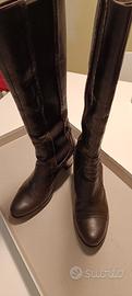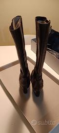 Stivali in pelle marrone, senza cerniera, con elastico ai lati e tacco cm