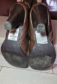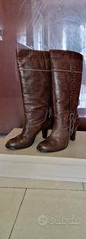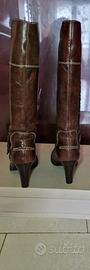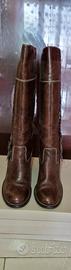 Stivali marca Cube in vera pelle marrone decorati con dettaglio intrecciato laterale + fibbia in metallo