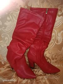 Stivali in pelle morbida rossa, eleganti con tacco comodo, n°37