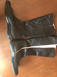 Stivali in morbida pelle n.38 color testa di moro scuro quasi nero messi a terra per prove