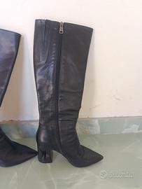 Vendo stivali in pelle fino al ginocchio, tacco particolare numero 37
