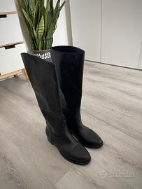Vendo stivali neri in vera pelle, ottime condizioni causa inutilizzo. Perfetti per outfit primaverili. Prezzo trattabile Gambale h 44 cm Lunghezza suola 27 cm