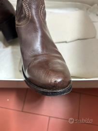 Vendo stivali in vera pelle, usati pochissimo. Vendo per inutilizzo. Hanno solo un piccolo dofetto in punta come visibile in foto. Numero 38