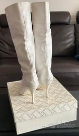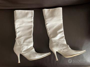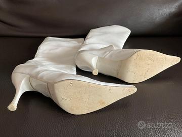 Pelle morbida e fine, possibilità di indossarli in 2 modi ( liscio o arricciato) N 36 . Altezza tacco 9 cm. Made in Italy È stata rifatta la suola in gomma ( antiscivolo) Condizioni come da foto