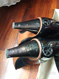 stivali alti, molto eleganti, originali di G. Armani. possono essere risvoltati per arrivare solo al ginocchio. Alcuni segni nei tacchi come da foto.
