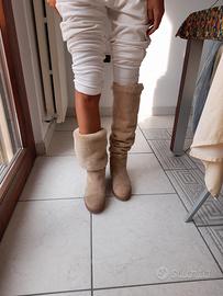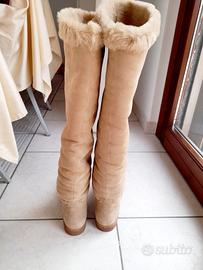 Stivali Gianmarco Lorenzi realizzati interamente in vero montone, portabili sia alti che abbassati. Nuovi con scatola.