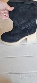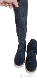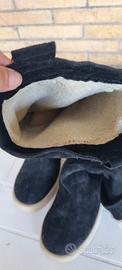 Vendo stivali neri al polpaccio effetto camoscio con interno foderato in morbida pelliccia sintetica, ideali per l’inverno.