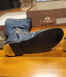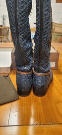 Vendo esclusivo paio di stivali La Martina da donna, colore blu, realizzati artigianalmente in pelle intrecciata di altissima qualità.