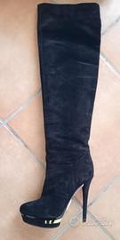 Vendo splendidi stivali di camoscio nero tg 36 marca "LE SILLA" sopra al ginocchio, con zip oro e plateau.Come nuovi . ritiro zona roma infernetto
