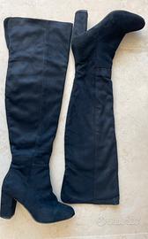Stivali alti neri tacchi. Stivale alto nero tessuto velluto effetto scamosciato con zip e tacco alto.