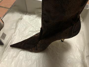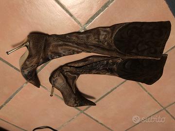 Stivali alti elasticizzati PITONATI con particolari in camoscio marrone su punta e retro, tacco dorato h.10