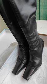 Splendidi stivali alti firmati Luciano Padovan, un'icona dell'artigianalità Made in Italy. Realizzati interamente in vero cuoio di altissima qualità, questi stivali uniscono l'eleganza intramontabile della pelle nera a una silhouette slanciata e femminile. Il numero è un 39, con tacco a spillo raffinato e pratica chiusura a zip laterale che garantisce una calzata perfetta.