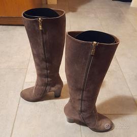 Stivali lunghi scamosciati, grigi, h. cm. 43 ca. - h. tacco cm. 9 da donna " SILVANA " TG. 36