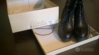 Causa inutilizzo vendo ad un terzo del prezzo stivali Alesya neri in pelle, taglia 38, calzati una sola volta e praticamente nuovi. Lo stivale può essere chiuso con una comoda cerniere laterale come da immagine. Le stringhe frontali costituiscono un accessorio. Consegna a mano