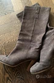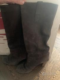 Stivali Max&Co in vera pelle scamosciata, taglia 41, tacco alto, si possono portare anche “scese” con le pieghe, suola in vero cuoio.