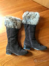 Stivali Max Mara in camoscio marrone con bordo pelliccia lapen (?) Nr. 36 indossati pochissimo