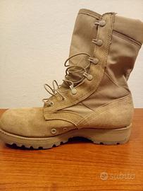 Il modello presenta una piastra in acciaio in punta che protegge il piede dai rischi e una barriera termica per un maggiore comfort sulle superfici calde. Collo imbottito per un maggiore comfort . Lingua a soffietto per tenere fuori sporco e detriti . I ganci per allacciatura a velocità in ottone mantengono una vestibilità aderente e sicura . Le bocchette di drenaggio in entrata impediscono il deflusso di acqua e umidità dallo stivale per mantenere i piedi asciutti .