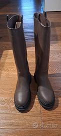 Vendo stivali colore marrone mis.43 , nuovi , ancora con etichetta causa misura errata. Alti fino al ginocchio , gamba e pianta larga.